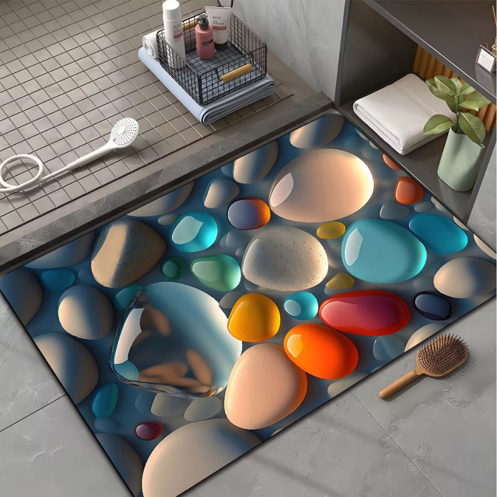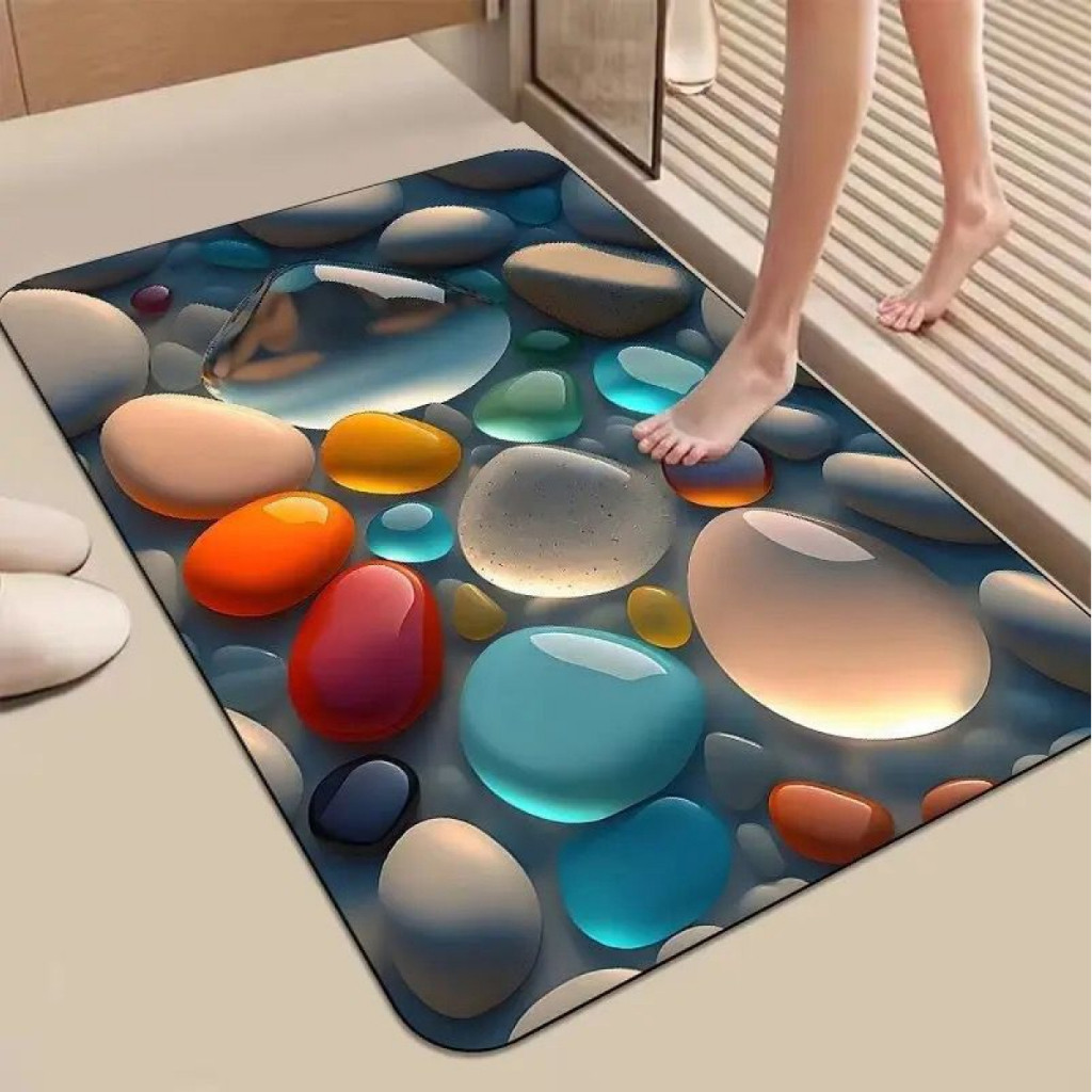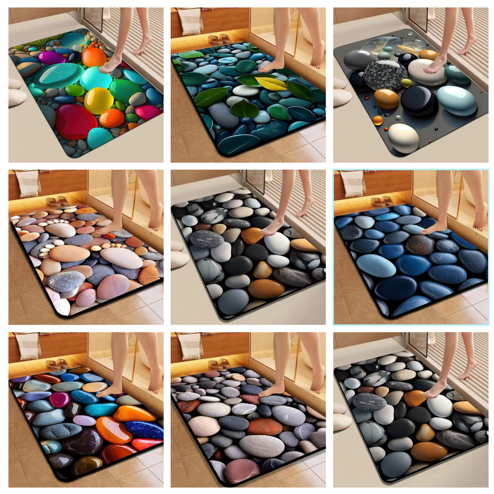 🪨 Tapete 3D Pedra – Secagem Rápida & Antiderrapante
